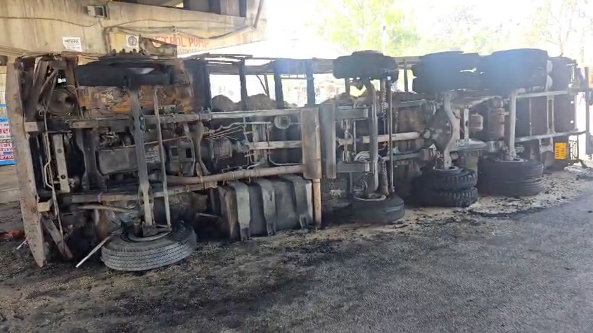 ਦੋਰਾਹਾ ਚੌਂਕ ਨੇੜੇ ਭਿਆਨਕ ਹਾਦਸਾ: ਮੋਟਰਸਾਈਕਲ ਸਵਾਰ ਨੂੰ ਬਚਾਉਂਦੇ ਹੋਏ ਪਲਟਿਆ ਟਰੱਕ, ਲੱਗੀ ਭਿਆਨਕ ਅੱਗ