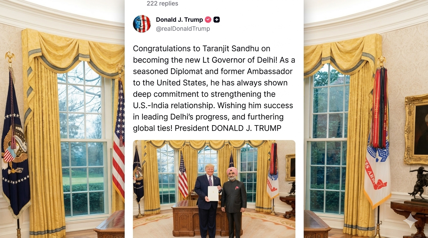 ਡੋਨਾਲਡ ਟਰੰਪ ਨੇ ਤਰਨਜੀਤ ਸਿੰਘ ਸੰਧੂ ਨੂੰ ਦਿੱਲੀ ਦਾ LG ਬਣਨ ‘ਤੇ ਦਿੱਤੀ ਵਧਾਈ; ਭਾਰਤ-ਅਮਰੀਕਾ ਸਬੰਧਾਂ ਦੀ ਕੀਤੀ ਸ਼ਲਾਘਾ