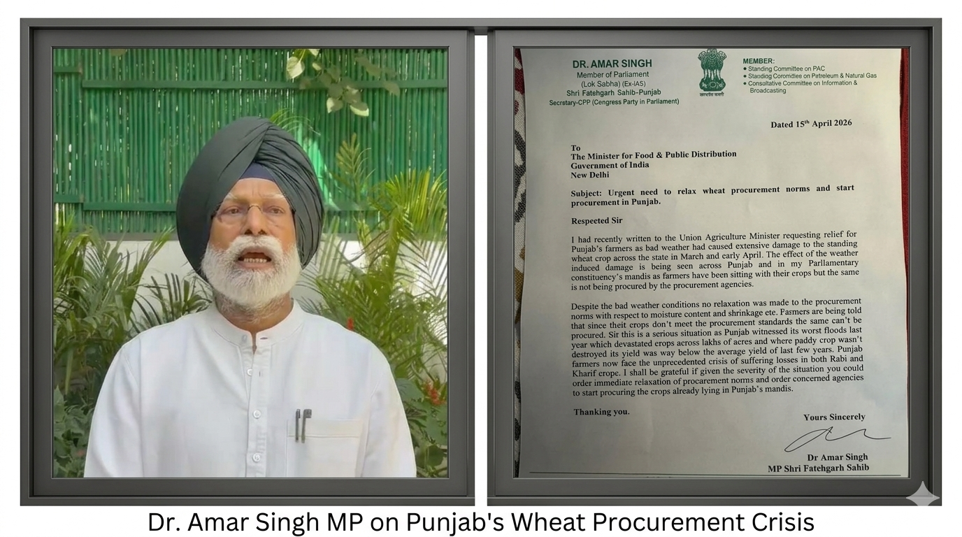 ਡਾ. ਅਮਰ ਸਿੰਘ ਨੇ ਕੇਂਦਰੀ ਮੰਤਰੀ ਪ੍ਰਹਿਲਾਦ ਜੋਸ਼ੀ ਨੂੰ ਲਿਖੀ ਚਿੱਠੀ; ਪੰਜਾਬ ਦੇ ਕਿਸਾਨਾਂ ਲਈ ਖਰੀਦ ਨਿਯਮਾਂ ਵਿੱਚ ਢਿੱਲ ਦੀ ਕੀਤੀ ਮੰਗ