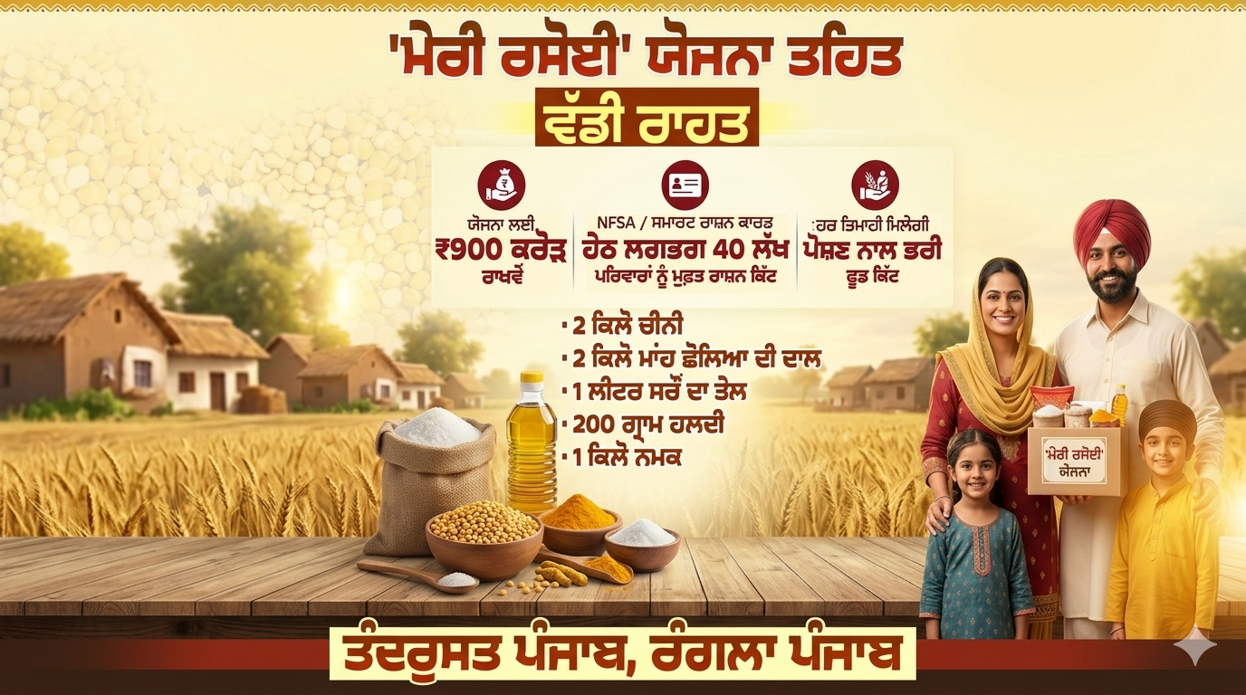 ‘ਮੇਰੀ ਰਸੋਈ’ ਯੋਜਨਾ: ਪੰਜਾਬ ਸਰਕਾਰ ਵੱਲੋਂ 40 ਲੱਖ ਪਰਿਵਾਰਾਂ ਨੂੰ ਮਿਲੇਗੀ ਵੱਡੀ ਰਾਹਤ; ਮੁਫ਼ਤ ਰਾਸ਼ਨ ਕਿੱਟਾਂ ਦੀ ਹੋਵੇਗੀ ਵੰਡ